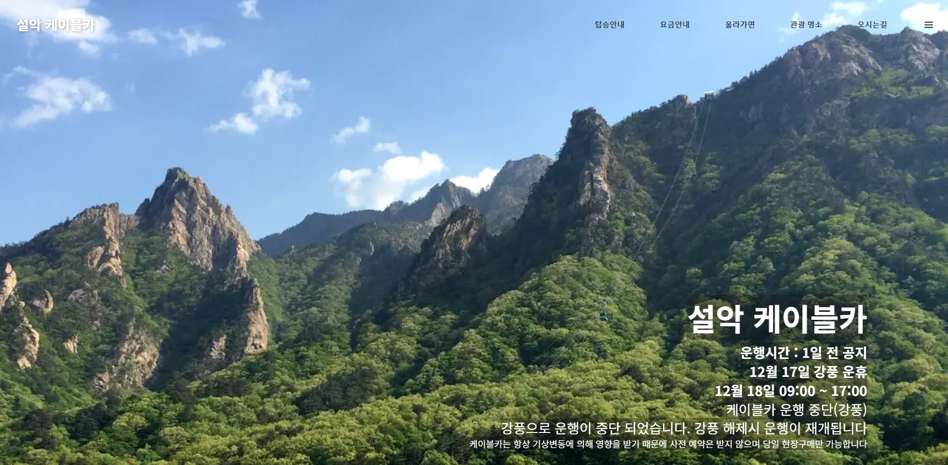 설악산 케이블카 운영 여부와 운행 시간은 설악 케이블카 홈페이지 에서 1일 전 확인할 수 있습니다.