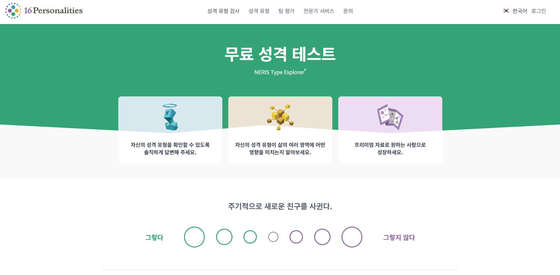 MBTI 검사는 아래 버튼을 클릭하여 무료로 5분 안에 받을 수 있습니다.